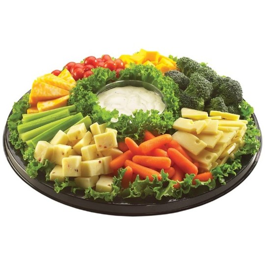 <p>Delicious cheeses, including colby jack, Swiss, New York cheddar and Monterey jack with jalapeño, along with fresh celery, carrots, broccoli and grape tomatoes.</p>