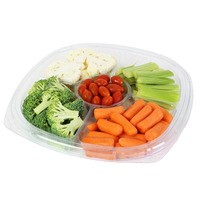 Enjoy fresh celery, carrots, broccoli florets, cauliflower florets, snap peas, and mini sweet peppers.