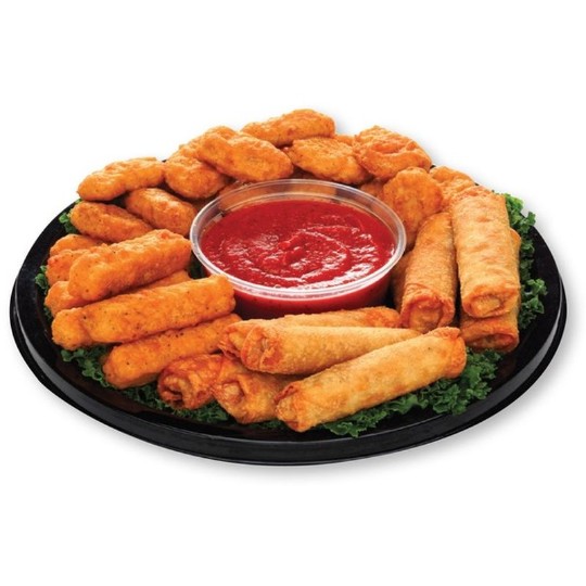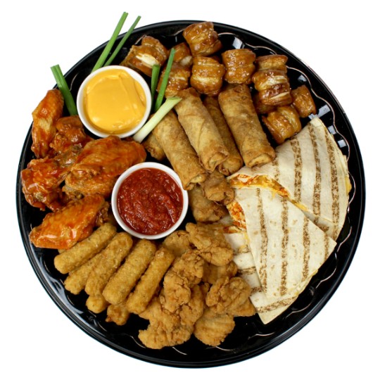 <p>Accompanied by blue cheese, choice of wing sauce, nacho cheese and pizza sauce. Serves 8-10. Heat and serve.</p> <p>Includes:<br> 8 Mozzarella Sticks<br> 10 Boneless Chicken Wings<br> 8 Chicken Wings<br> 8 Pizza Logs<br> 8 Quesadillas<br> 16 Pretzel bites</p>